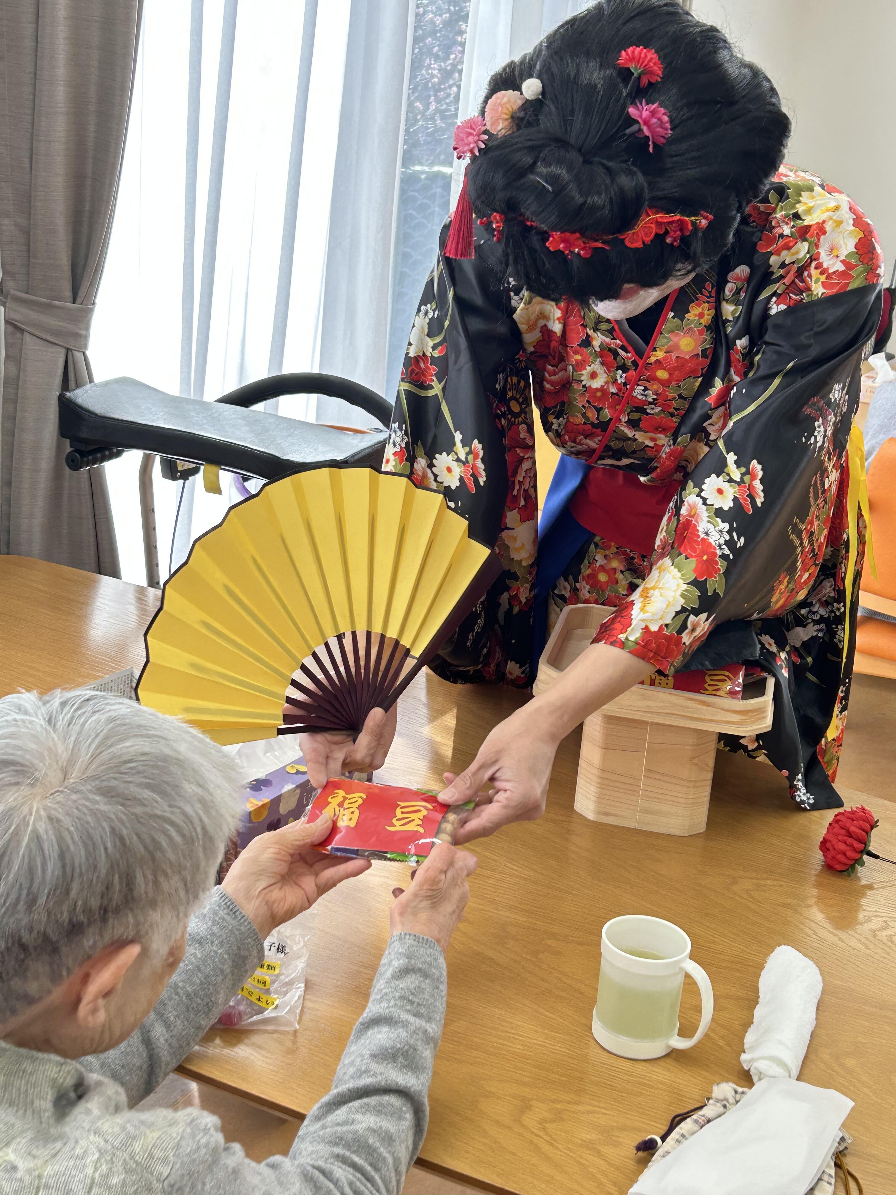 こんにちは!広報委員会です!先日、風のガーデンでは、【節分イベント】を開催しました!イベントでは、芸者の格好をした職員が舞を披露し、入居者の皆様も手拍子をして楽しまれていました!そして、、、節分ということで風のガーデンにも鬼がやってきました...